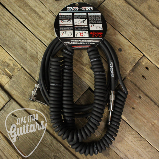 Divine Noise Straight to Right Angle 30ft 50/50 Instrument Cable - Black - Right Angle plug on the curly side with Straight plug end on the other