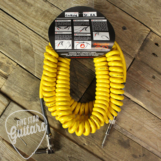 Divine Noise Straight to Right Angle 30ft Curly Instrument Cable - Yellow
