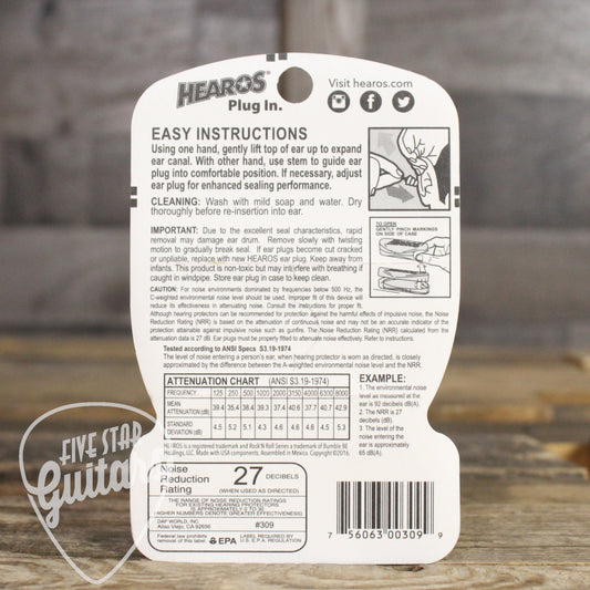 Hearos 309 Rock n Roll Ear Plugs Single Set