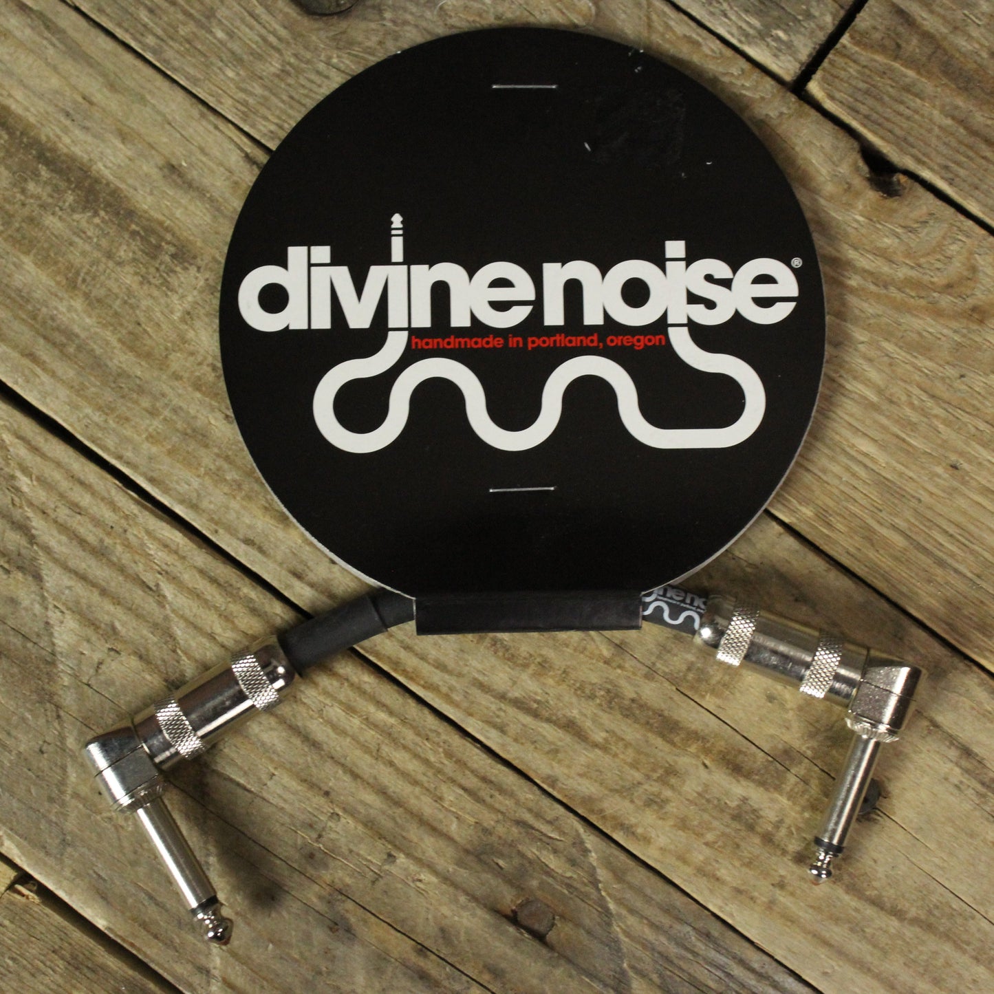 The Divine Noise Right Angle to Right Angle 6 Inch Instrument Cable in black is designed to provide superior performance and reliability for your musical setup. Handcrafted in Portland, Oregon, this cable is perfect for connecting pedals and other equipment, ensuring clean and noise-free signal transmission. Whether you're on stage or in the studio, Divine Noise cables deliver exceptional sound quality and durability.