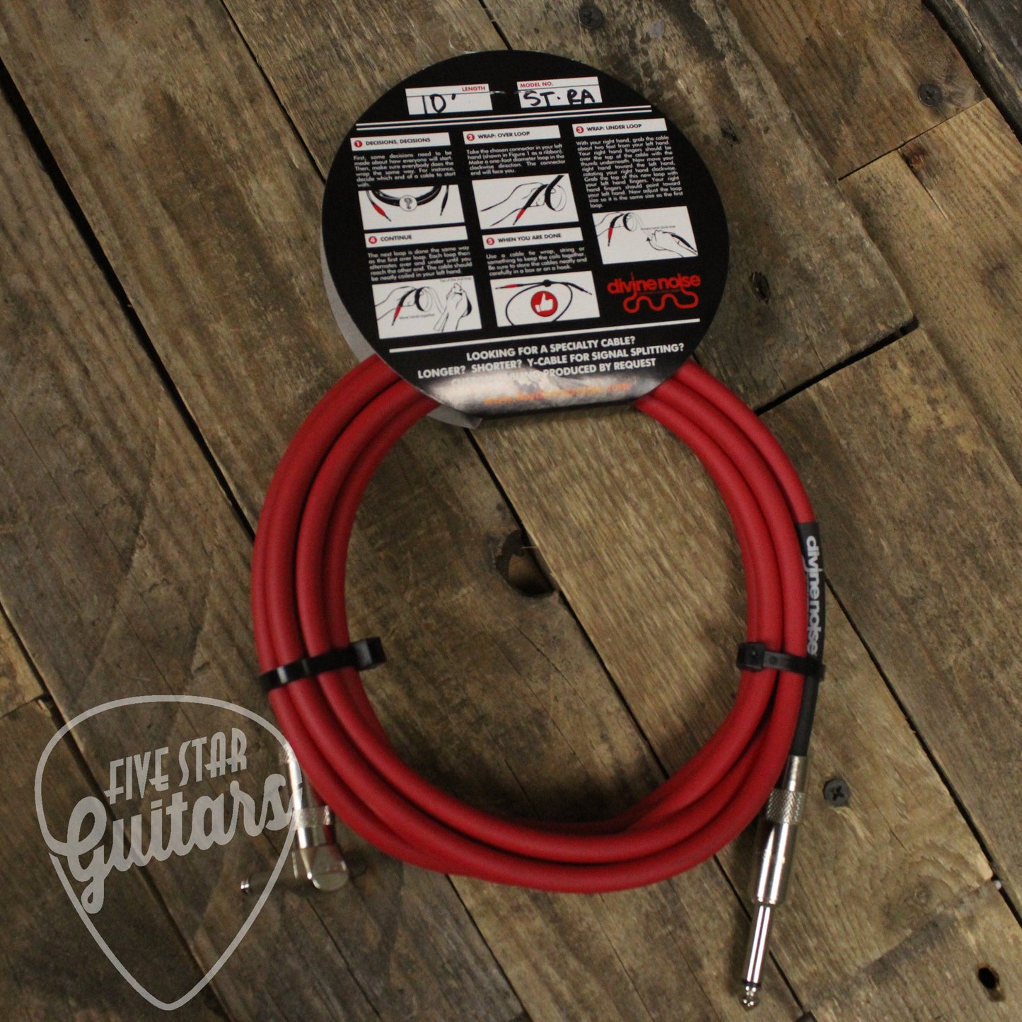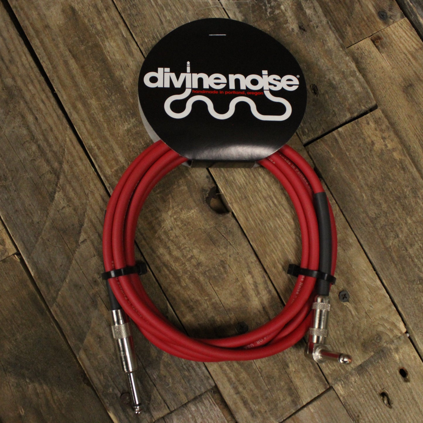 The Divine Noise Straight to Right Angle 10 Foot Instrument Cable in red is meticulously handcrafted in Portland, Oregon, to deliver exceptional sound quality and reliability. Designed for musicians who demand the highest quality from their equipment, this cable ensures optimal performance both on stage and in the studio.
