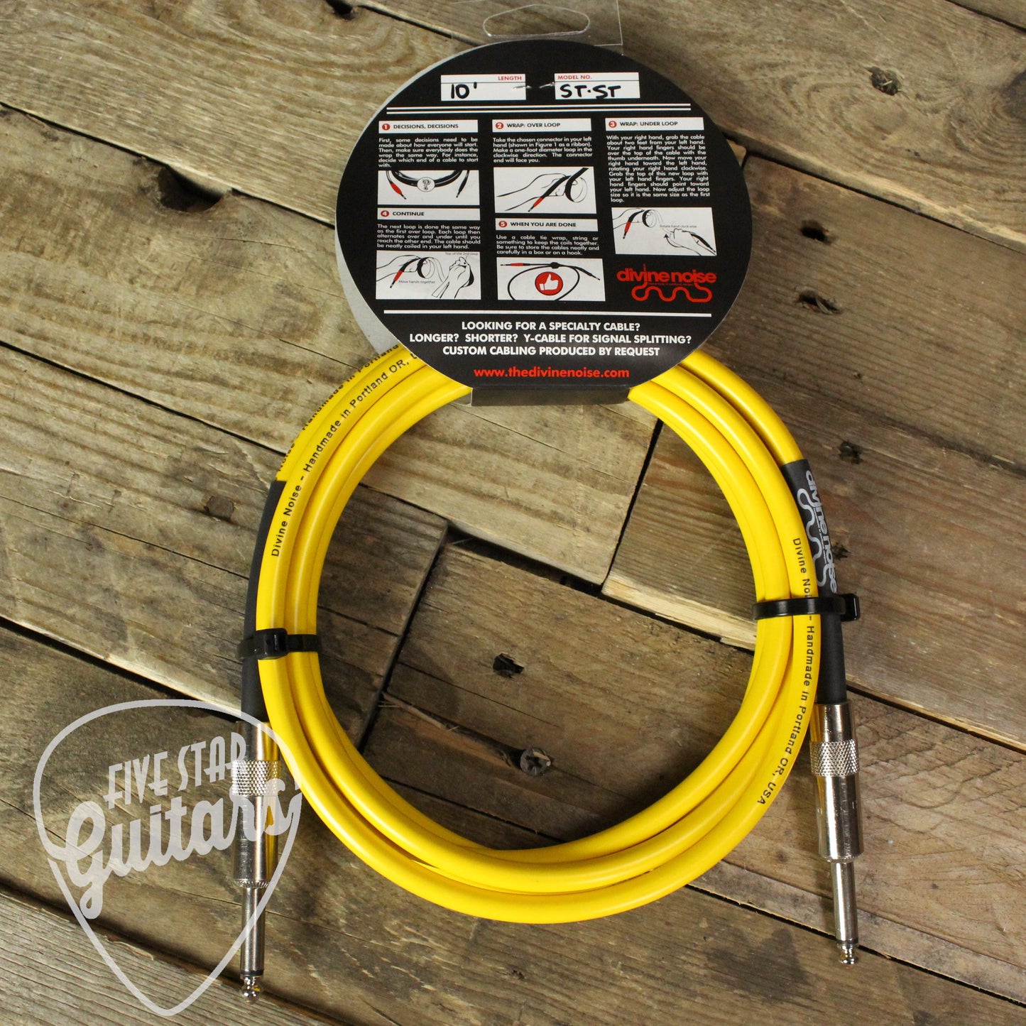The Divine Noise Straight to Straight 10 Foot Instrument Cable in yellow is meticulously handcrafted in Portland, Oregon, to deliver exceptional sound quality and reliability. Designed for musicians who demand the highest quality from their equipment, this cable ensures optimal performance both on stage and in the studio.