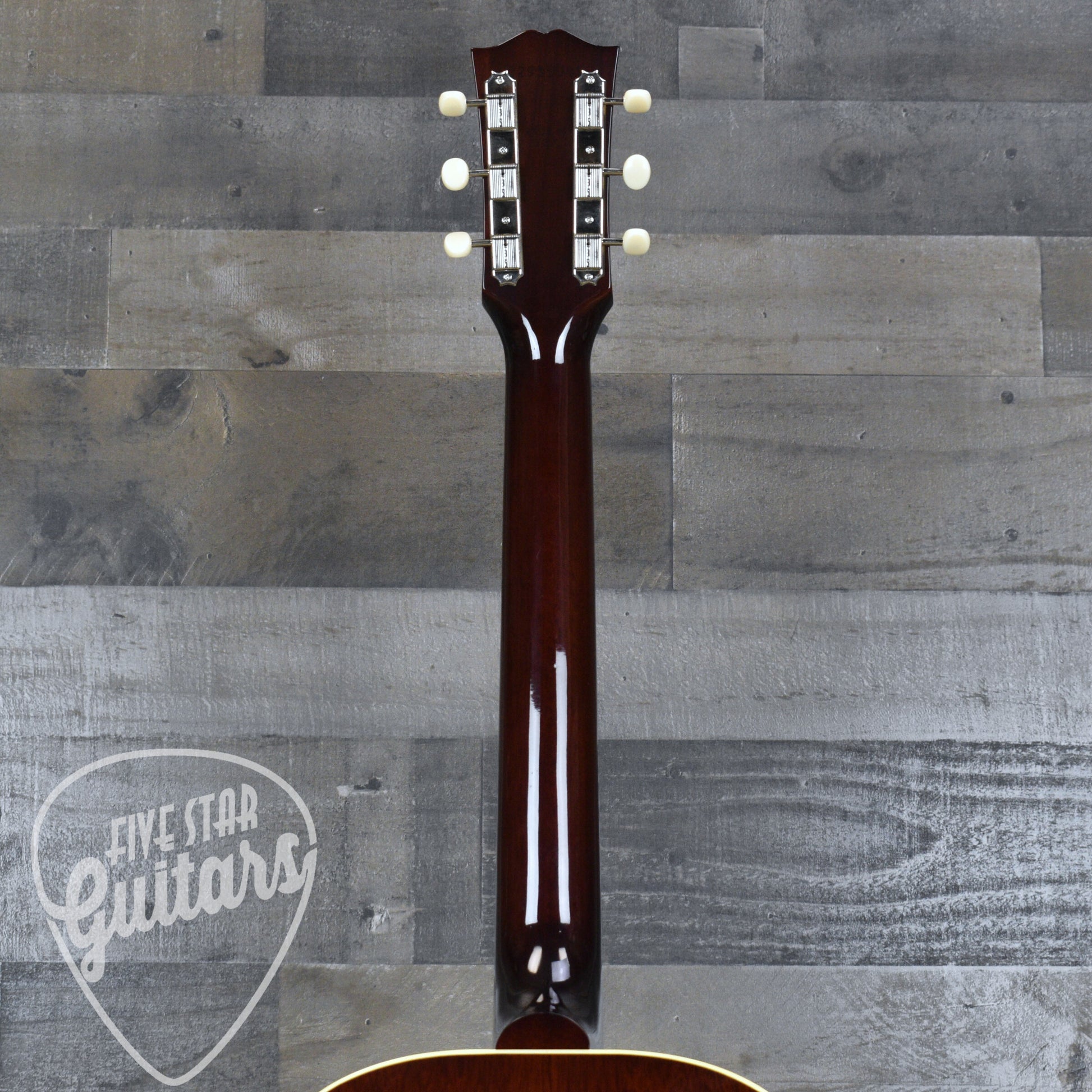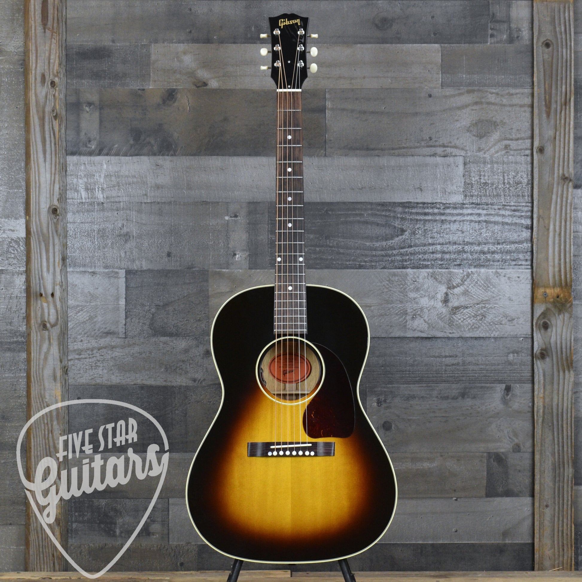 Finished in a striking Vintage Sunburst with a multi-ply top binding and single-ply back binding, the 50s LG-2 is every bit a visual tribute to Gibson’s mid-century legacy. The rectangular closed-slot bridge, Grover Strap Cream Button tuners, and subtle aesthetic appointments reflect a deep respect for the original design. From its handmade tonewood construction to its flawless fretwork and gloss nitro finish, every detail has been finely tuned to deliver the look, feel, and tone of a true vintage icon.