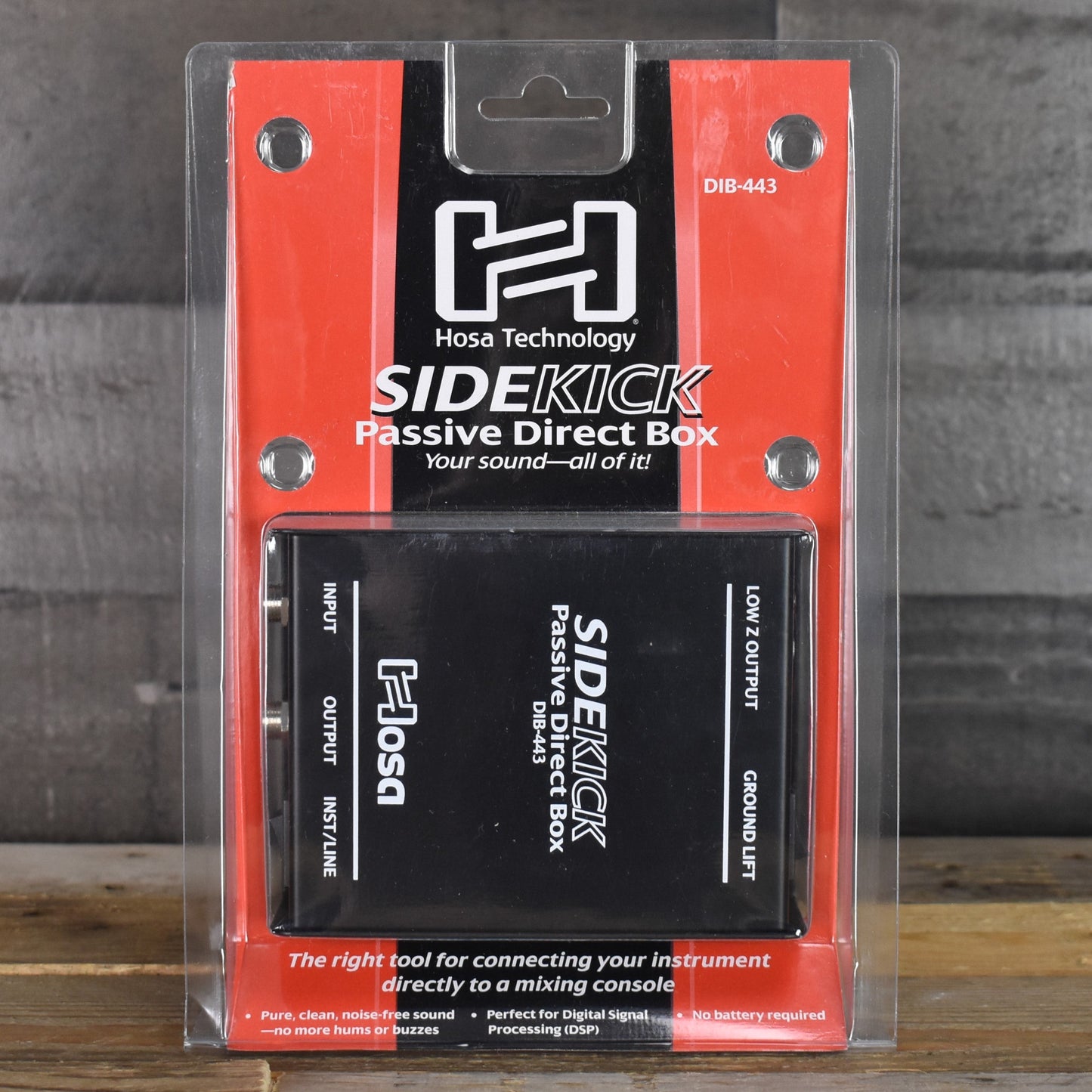 The Sidekick Passive DI Box by Hosa Technology makes it easy to connect your guitar, bass, or keyboard directly to a mixing console. Featuring an isolation transformer, the Sidekick transforms an instrument-level signal to a line-level signal, ensuring a pure, clean, noise-free tone perfect for digital signal processing (DSP) or natural, overdriven sounds. This versatile DI box is suitable for electric guitars, basses, keyboards, pedal effects, effects processors, and any electronic musical instrument with a mono phone output.