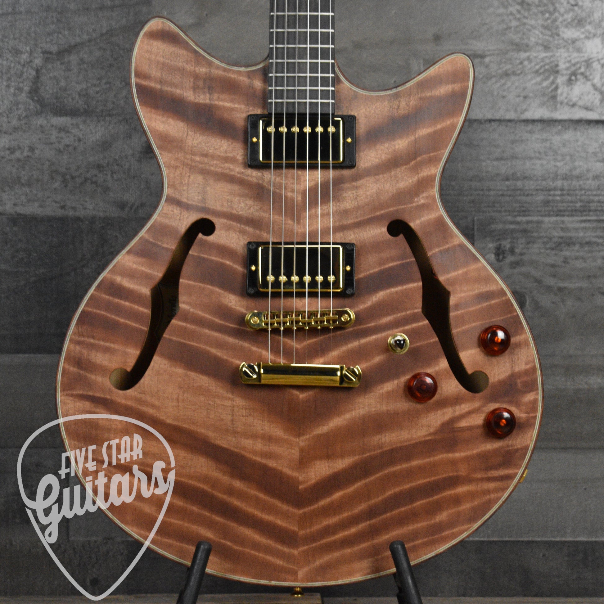 This semi-hollow electric guitar ships fully insured with signature required.