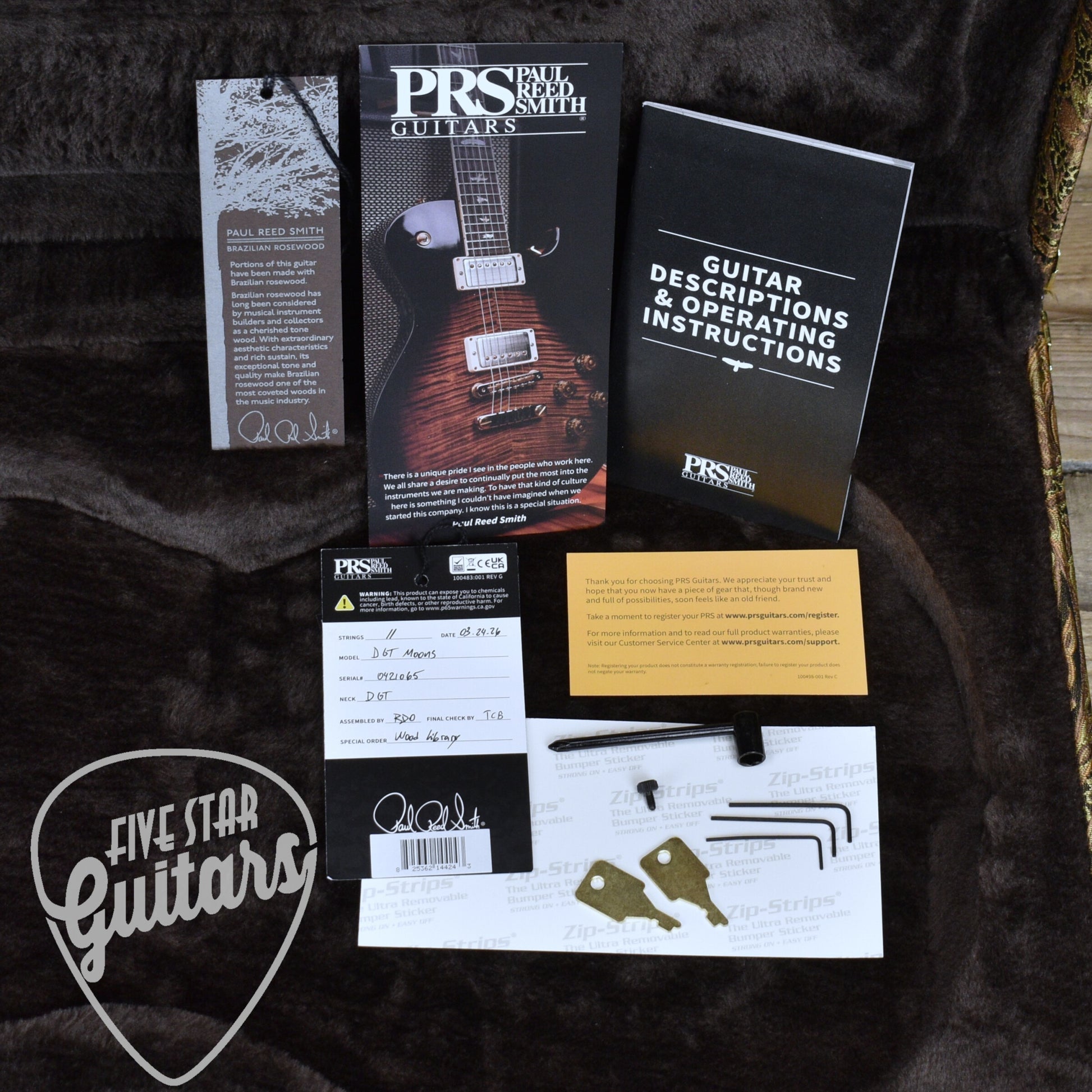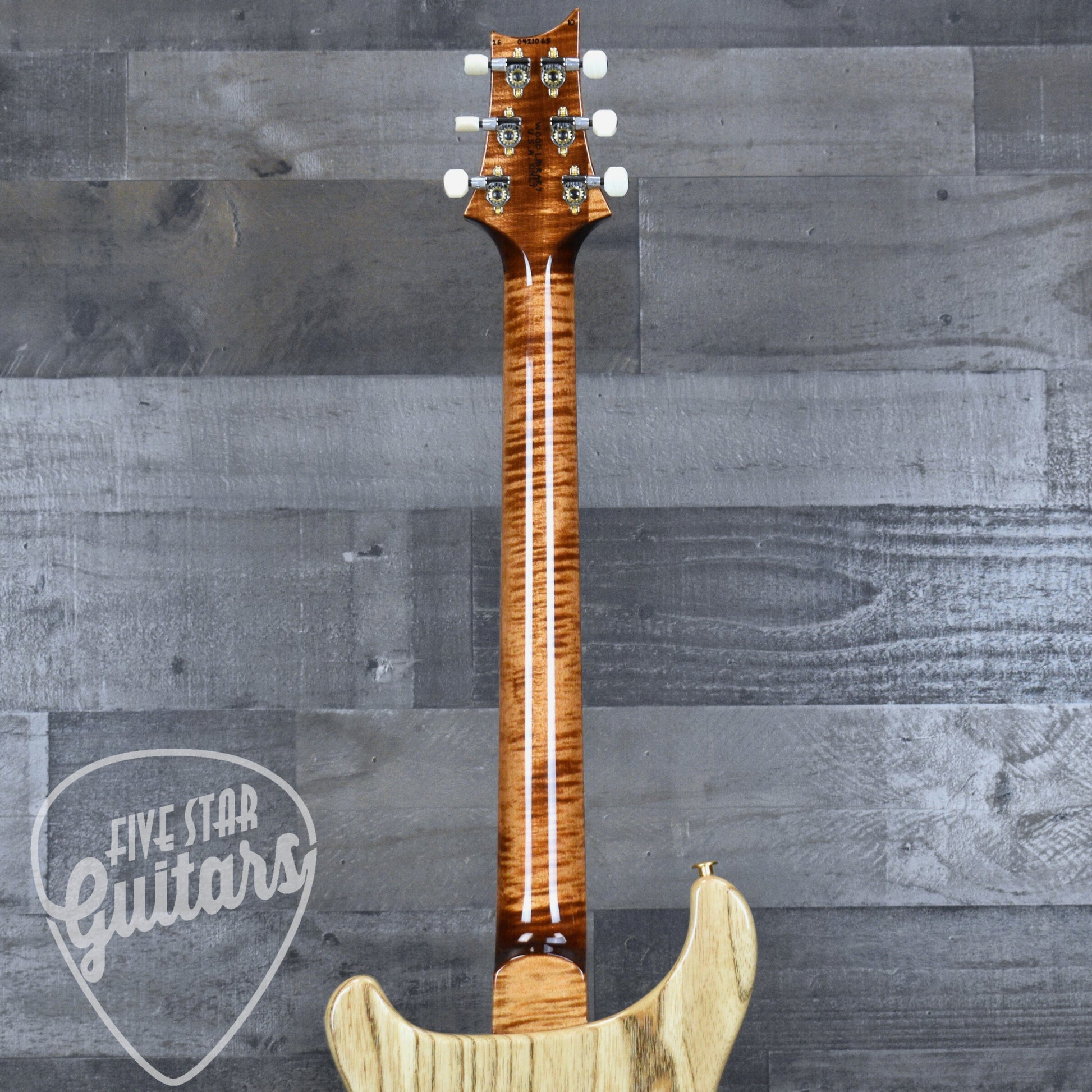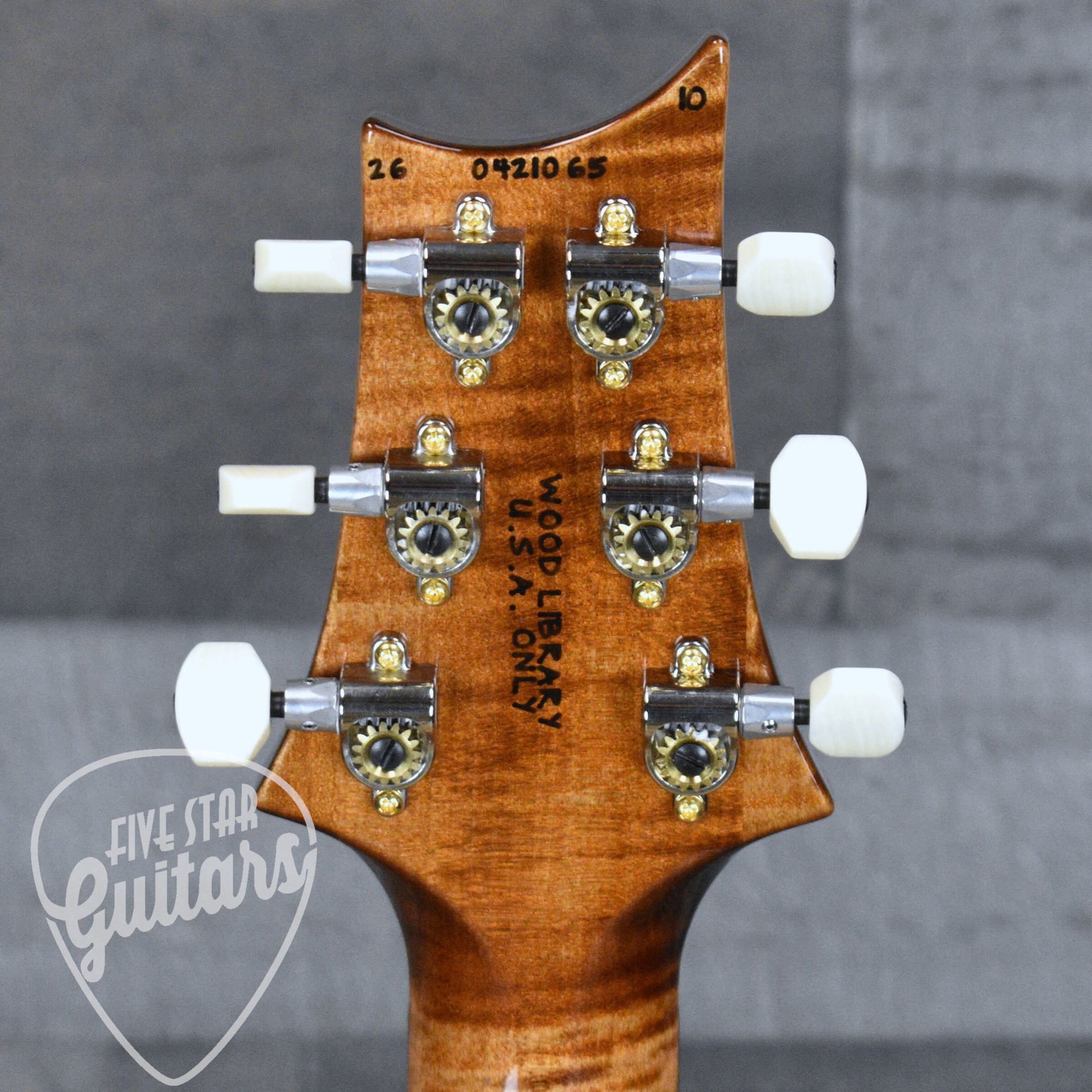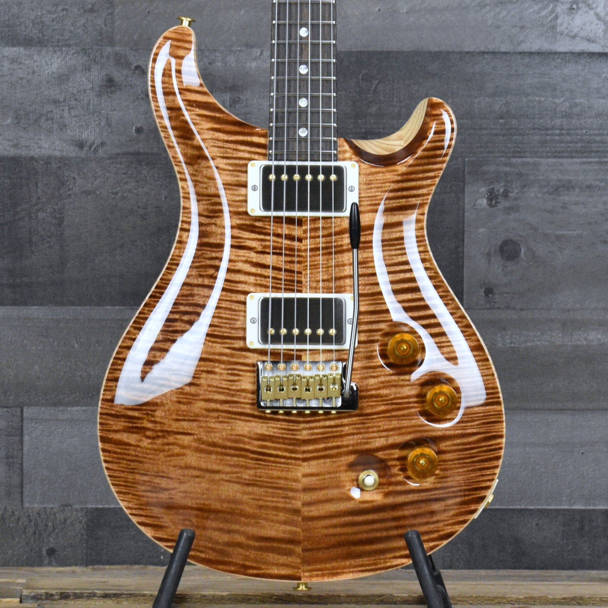 The PRS Patented Tremolo Gen II bridge provides smooth vibrato with excellent tuning stability, built to handle expressive playing without compromise. PRS Phase III locking tuners with faux bone buttons keep everything secure and consistent. Hybrid hardware complements the Copperhead finish, while Moons inlays complete the classic PRS aesthetic. Fit and finish reflect the high standards expected from a Wood Library instrument.