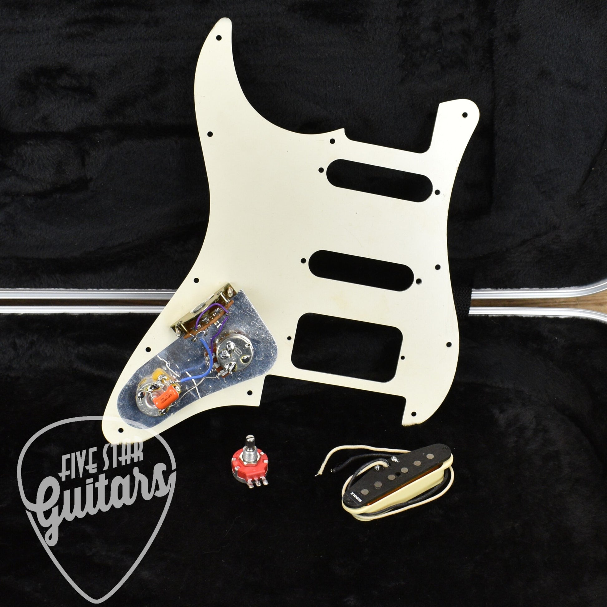 - Included Accessories: Hardshell case, spec sheet, original HSS pickguard, original middle pickup, case candy