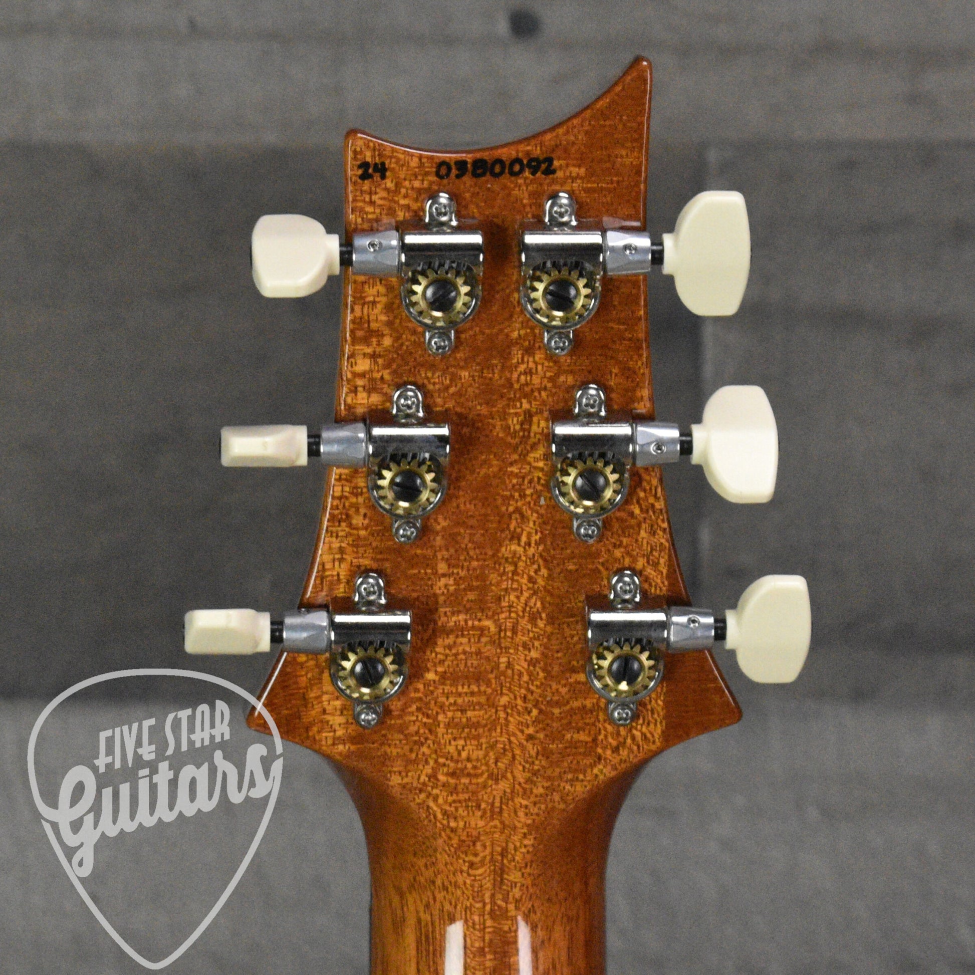 With its violin-carved maple top over a solid mahogany body, this Custom 24-08 resonates with both tonal warmth and visual flair. Fit and finish are uncompromised, and PRS's set-neck construction further enhances sustain and resonance. Subtle upgrades like the inlaid signature headstock logo and iconic bird inlays round out the guitar’s elevated design.