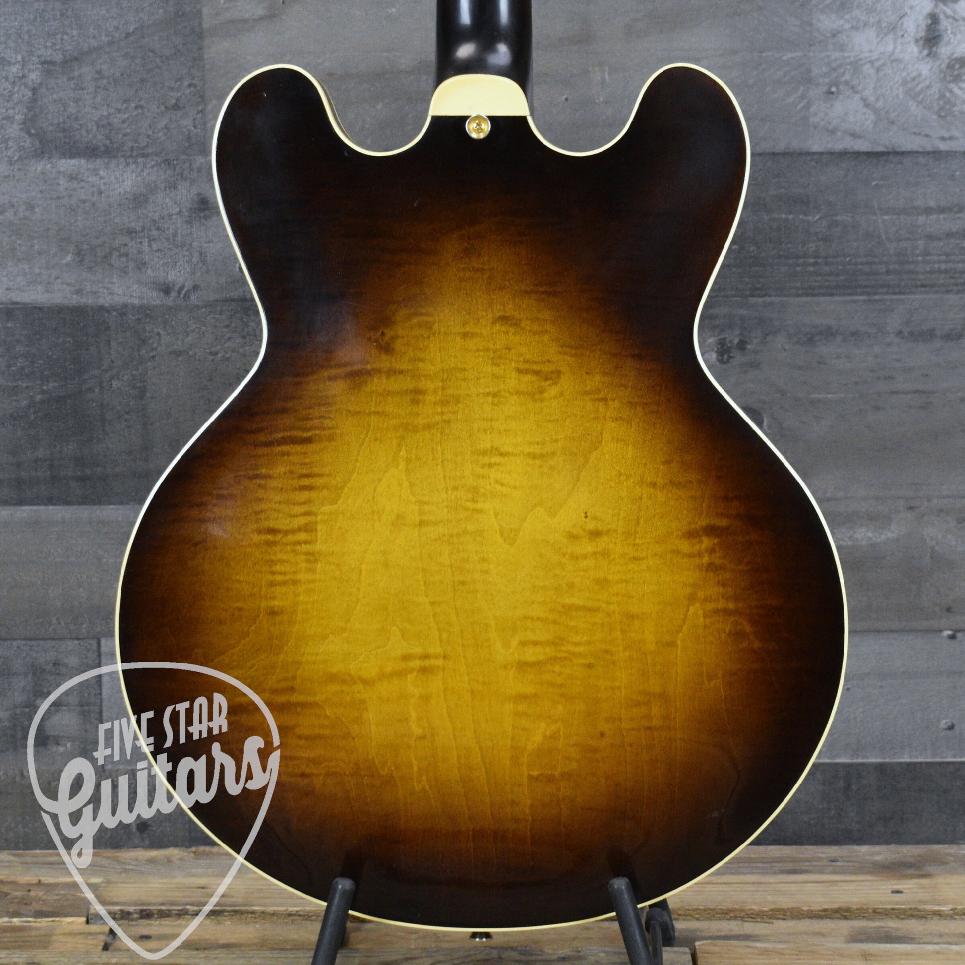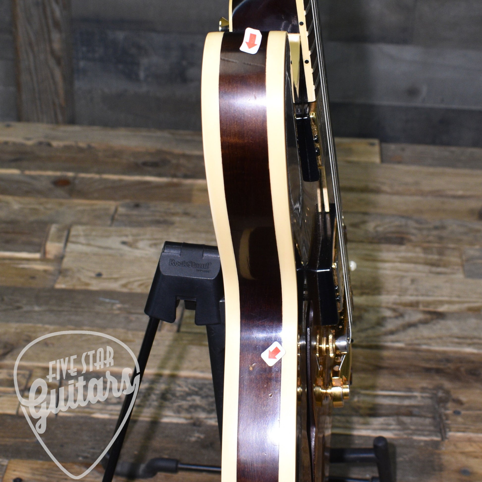 Built in 2002, this H535 delivers the familiar air and resonance of a true semi hollow design with a solid center block anchoring the response. Laminated curly maple top and back pair with a solid maple rim to produce a tone that is nice and lively. Notes bloom with natural sustain while chords retain clarity and depth, making this a versatile platform for any play style.