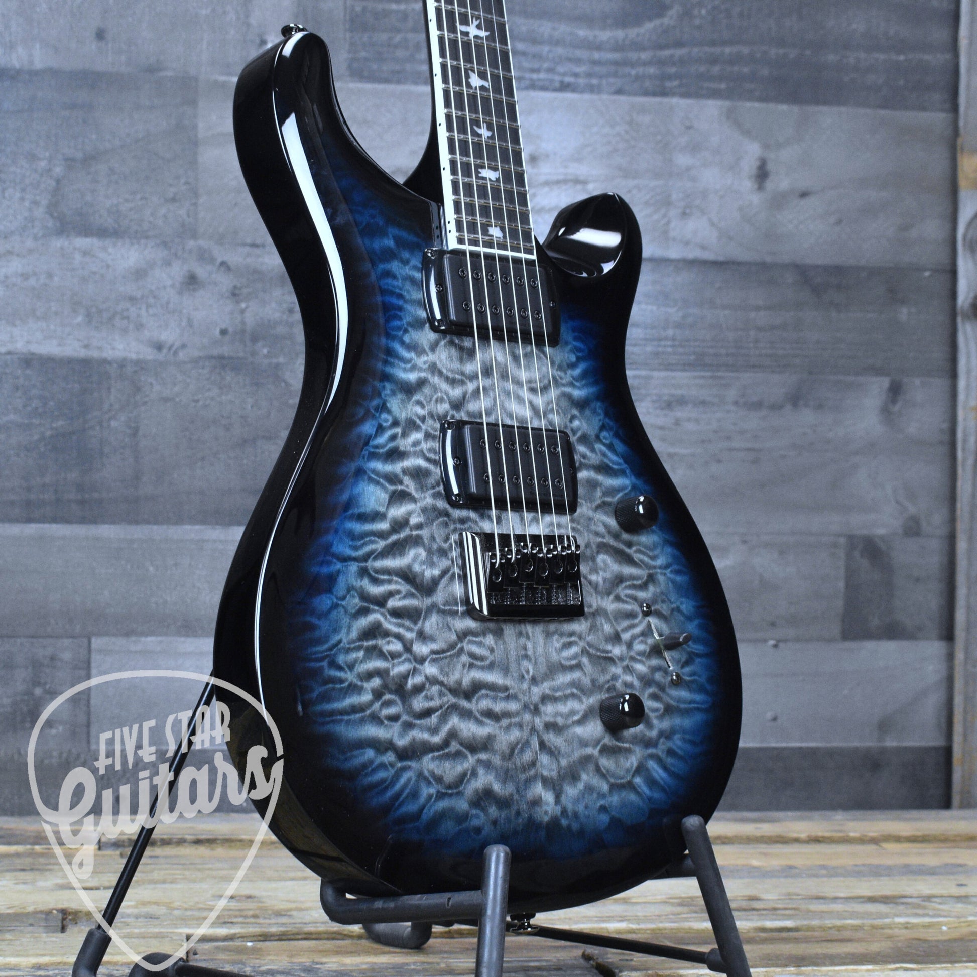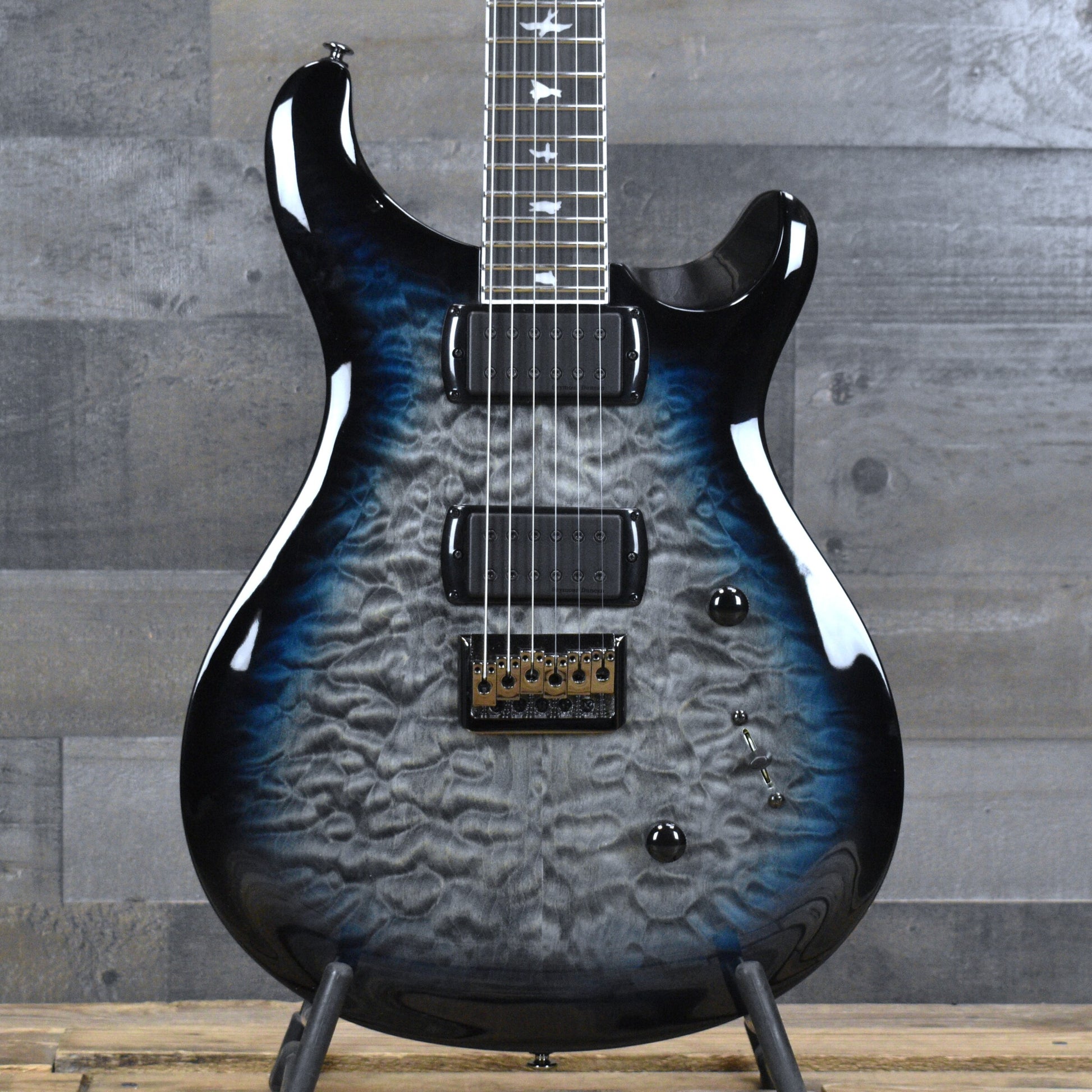 The satin finished maple neck features PRS’s Wide Thin carve with a comfortable depth profile the neck offers a confident yet agile feel across all positions. Black chrome hardware completes the modern aesthetic while the PRS plate style string through bridge enhances sustain and tuning stability. PRS designed tuners and a PRS nut ensure reliable performance whether in the studio or on stage.