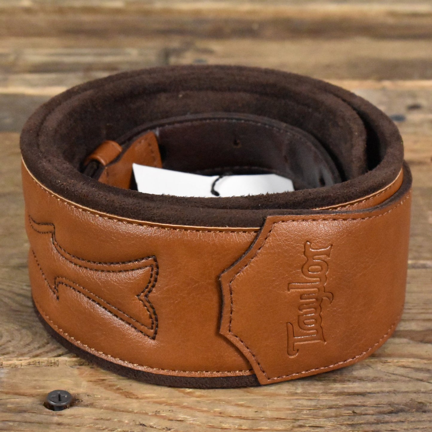 The Taylor 2.75" Vegan Leather Guitar Strap offers exceptional comfort and support while being 100% free of any animal products. Featuring a classic tan leather look with an embossed Taylor logo, this strap combines style with sustainability. Its 2.75" width provides optimal support for long playing sessions, making it a perfect choice for any guitarist.