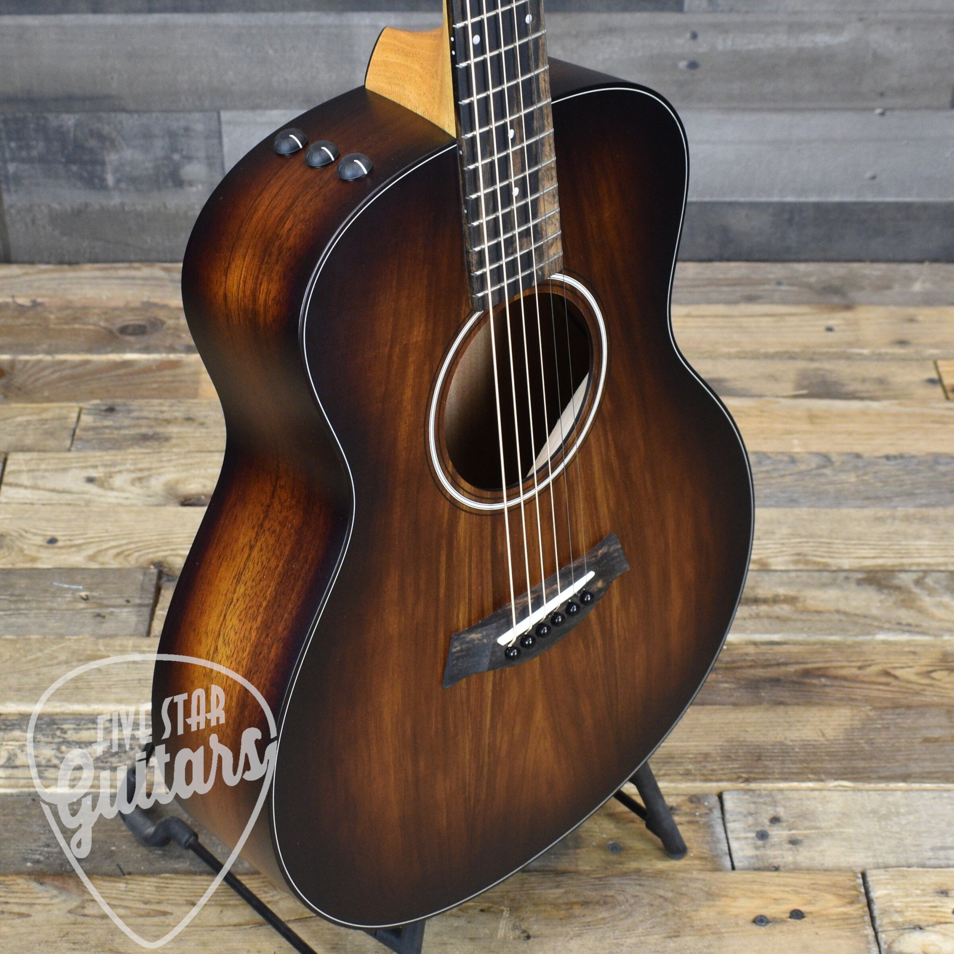 The solid Hawaiian koa top adds visual beauty and inspiring tones. Over time, the koa top develops warm, sweet overtones that enhance the guitar's sound, making it richer and more resonant the more you play it.
