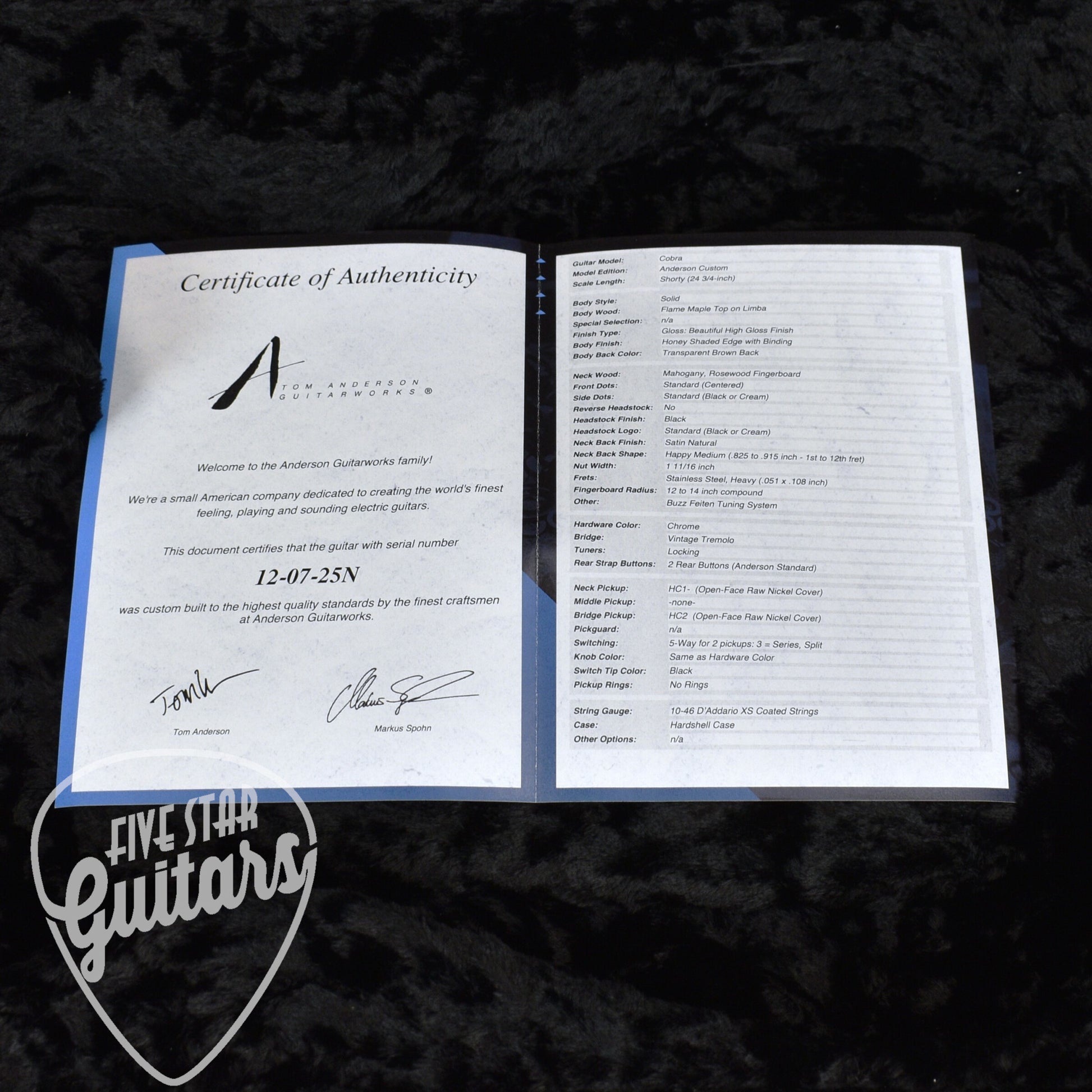 From the perfectly dressed heavy frets to the impeccable neck joint, this guitar showcases Tom Anderson’s standard of absolute precision. Fit and finish are absolutely flawless. The wedge neck pocket increases tonal transfer and sustain by maximizing neck-to-body contact. Every detail has been designed to make the Cobra a versatile guitar you keep coming back to time and time again.