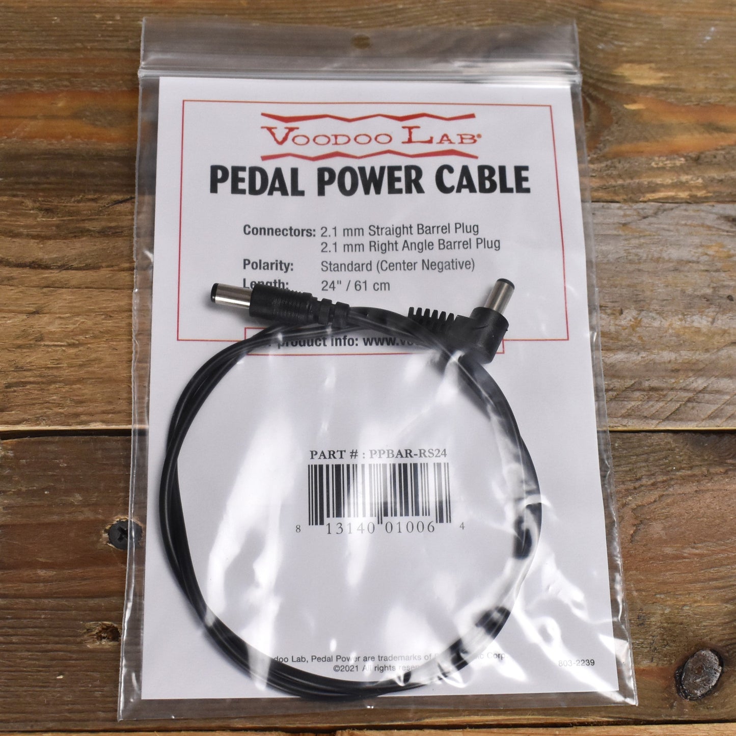 Voodoo Labs 2.1mm Straight to Right Angle 2.1mm Barrel Pedal Power Supply Cable - 24" - PPBAR-RS24: Extended Reach